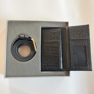 کیف پول و کمربند به همراه هاردباکس قابل سفارش در طرح و رنگ های عسلی وقهوه ای و مشکی