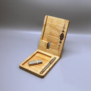 هولدر موبایل چوبی طرح خاتم کوچک فلش خاتم خودکار خاتم اعلا در جعبه هاردباکس طرح چوگان سایز 4*29*23