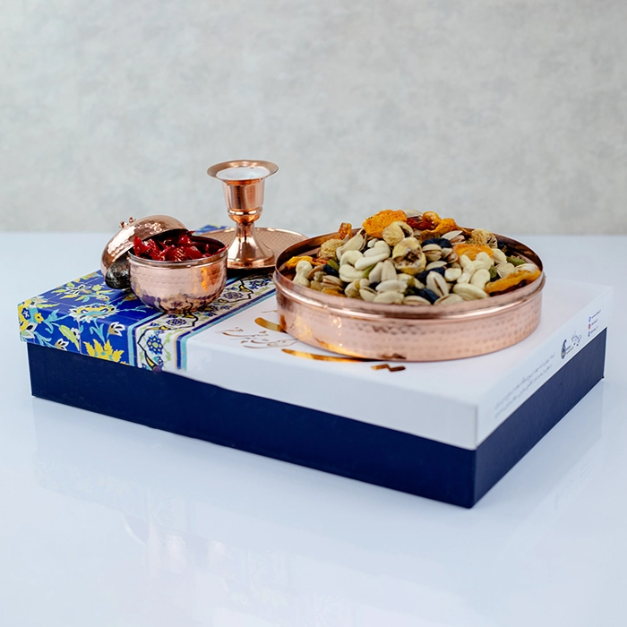 - ۶۰۰ گرم آجیل بنا به درخواست مشتری (با توجه به نوع آجیل درخواستی قیمت آجیل مجزا محاسبه و به قیمت کالا اضافه میشود)